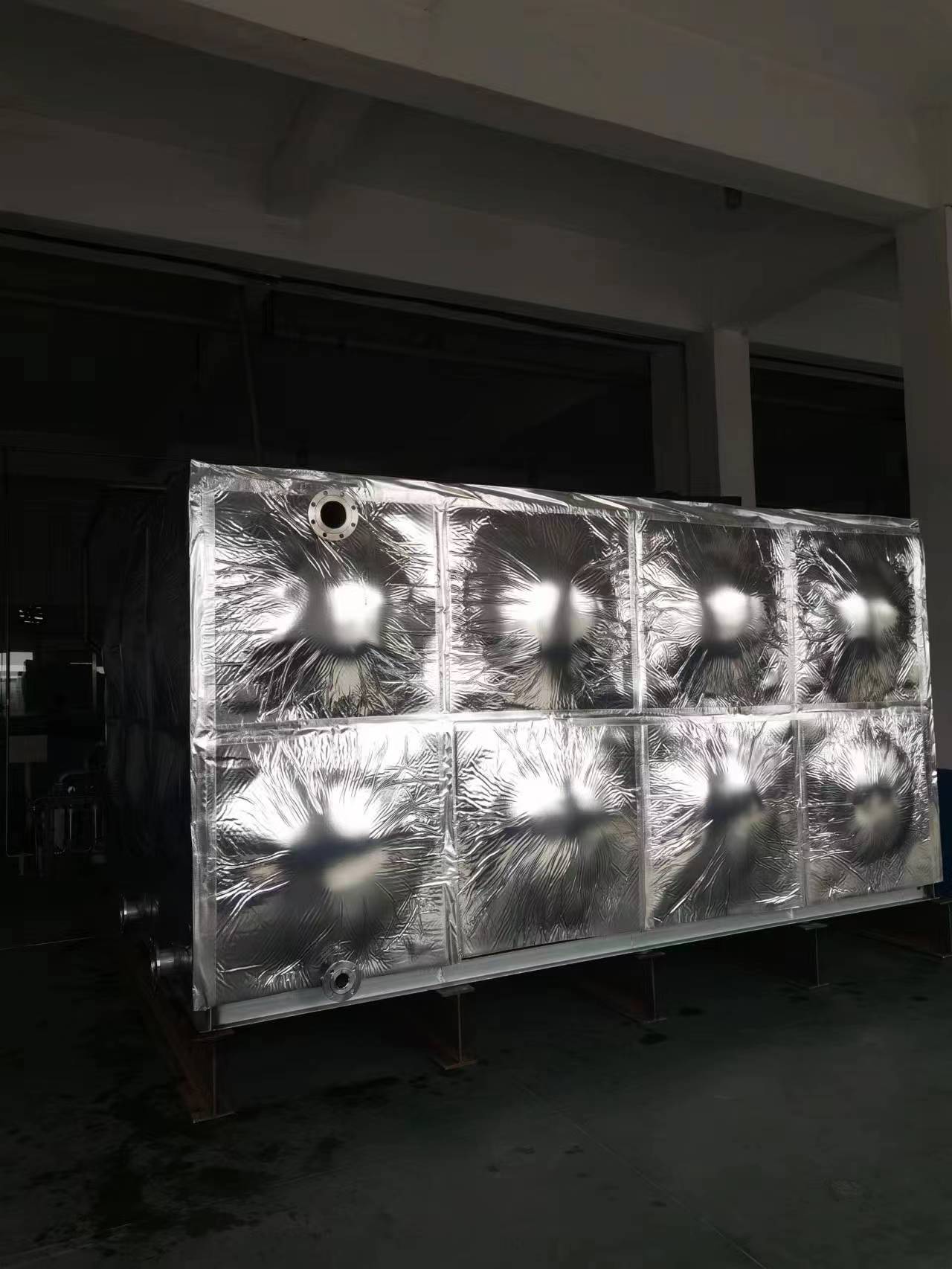 我司承接的山東省濱州市惠民縣山東蔚藍生物科技有限公司項目的不銹鋼保溫水箱已安裝試水完成。不銹鋼水箱具有重量輕、不銹蝕、不滲漏、性不銹鋼水箱、水質好、使用范圍廣、使用壽命長、外形美觀、安裝方便、清洗維修簡便、適應性強等特點。并且任意組合,造型應用戶要求,容積可滿足設計要求,安裝現場無特殊要求,可提供保溫服務。不銹鋼水箱符合消防、建筑基準法 在大樓發生火災時,與玻璃鋼容器比較更明的優點是不銹鋼槽也同時可以起到初期滅火用供水箱的作用,這是符合有關消防、建筑基準法的。不銹鋼水箱輕便而強度高 SUS的屈服強度相當于碳素鋼的1.5倍,玻璃鋼的6倍,對于耐震、耐積雪、耐風壓、耐沖擊等具有出類拔萃的優良性。