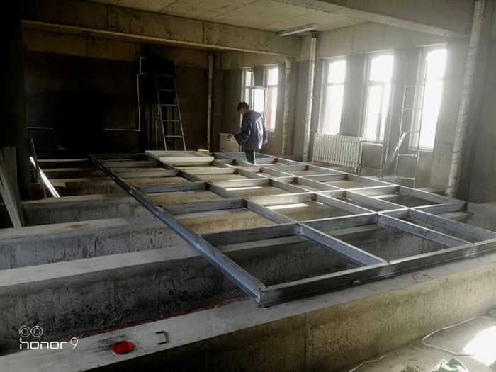 安裝人員現(xiàn)場(chǎng)焊接完槽鋼底座正在擺放水箱底板,焊接槽鋼底座的目的是讓水箱承受力更均勻,使用壽命更長(zhǎng)久。