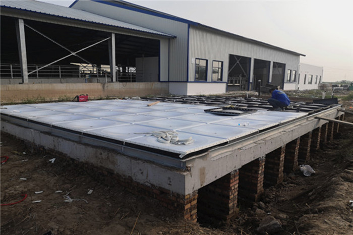 組合式搪瓷鋼板水箱板塊均由搪瓷鋼板拼裝而成,用槽鋼底架支撐箱底,內用搪瓷補強板加固,板塊之間用橡膠條密封,用螺栓緊固,使之強度更大。其貯水容積從1.0立方米至1000立方米,高度可達5米??砂幢竟径ㄐ彤a品組合,也可按用戶要求的尺寸生產組合。該水箱內貯存的水質經衛生防疫站鑒定符合國家〈〈生活飲水衛生標準〉〉〈GB5479-85〉的要求。